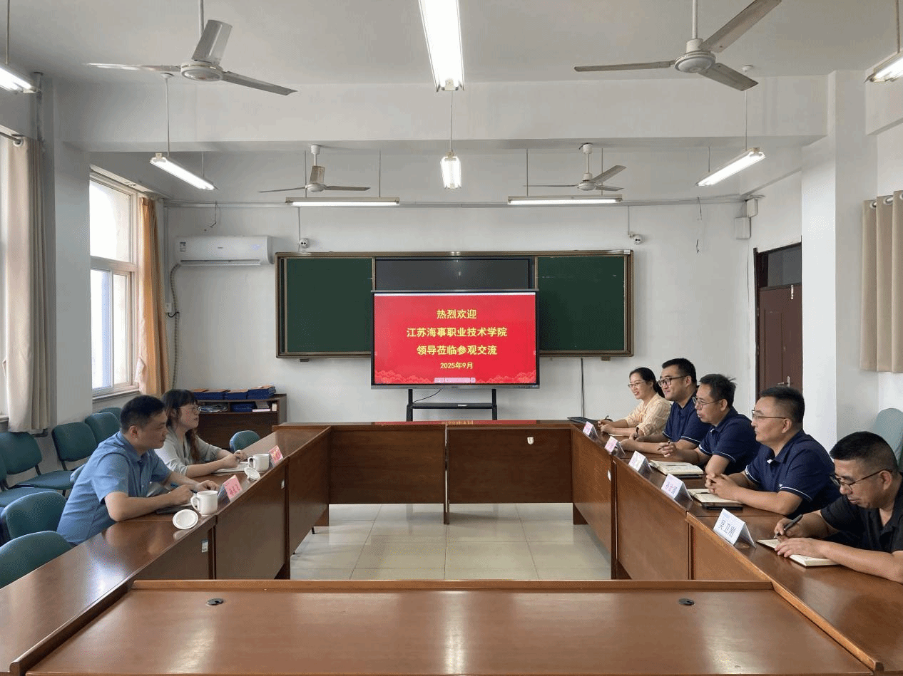 近日,江苏海事职业技术学院轮机与电气工程学院院长孙长飞、港口机械与智能控制专业主任叶亚兰一行 2 人来校访问交流,智慧港口学院全程接待。