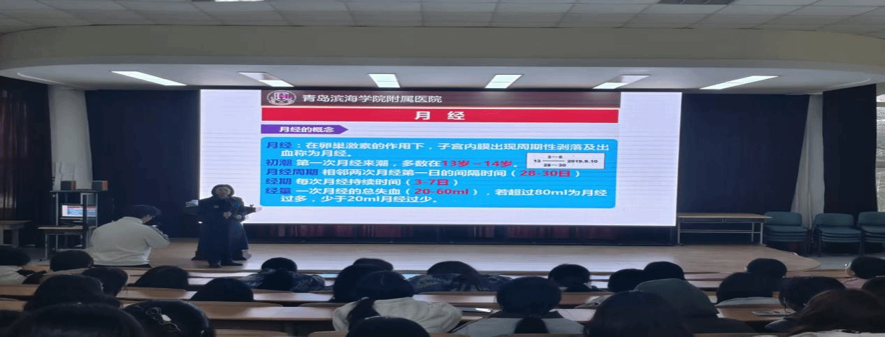 讲座特邀青岛滨海学院附属医院妇产科专家蔡小兰博士担任主讲。作为长期深耕女性健康领域的临床与科研工作者,蔡小兰以深厚的医学功底和温暖的人文关怀,围绕“认知、技能、态度”三个维度,为同学们带来一场既有科学高度又有情感温度的健康科普。在认知层面,蔡博士深入浅出地讲解了女性生理结构的独特性与青春期心理发展的规律,帮助大家科学理解身体与情绪的变化;在技能层面,她细致传授了日常自我保健的实用方法,并系统介绍了常见妇科疾病的早期识别信号与科学预防策略;在态度层面,她特别强调:健康不是羞于启齿的话题,而是值得被认真对待的权利。她鼓励同学们树立积极、理性的健康观,在面对身心困惑时,勇敢打破沉默,主动寻求专业支持。整场讲座语言亲切、案例鲜活,互动频频。同学们专注聆听,认真记录,不时点头回应,现场洋溢着求知与信任的氛围。